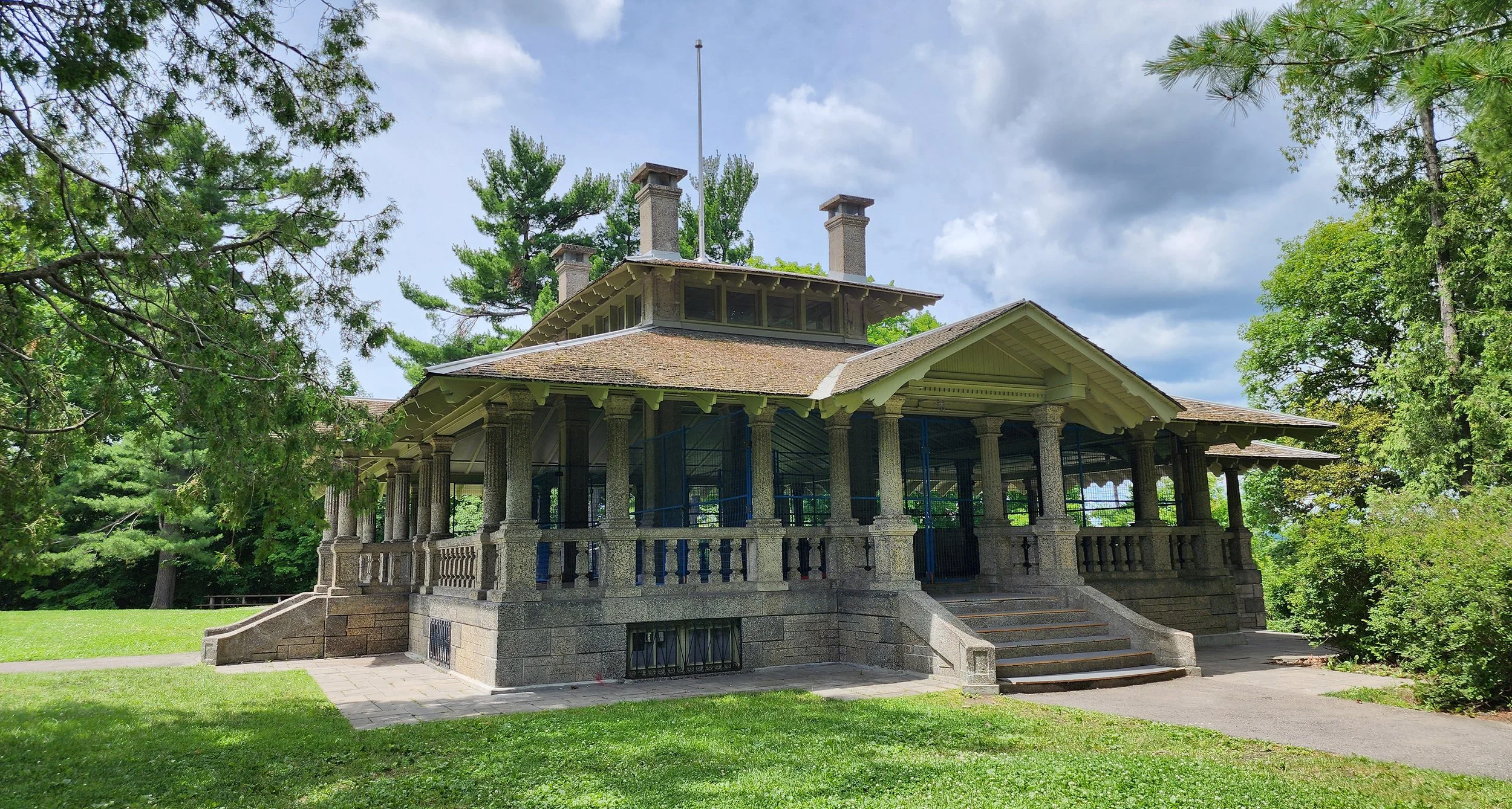 The Rockcliffe Pavilion is a federally recognized heritage building located in Rockcliffe Park. Looking out on the Ottawa River toward Gatineau, the pavilion neighbours other important regional features including the Rockcliffe Lookout, the Rockcliffe Boathouse and Marina, the NCC River House, and the Ottawa River pathway.